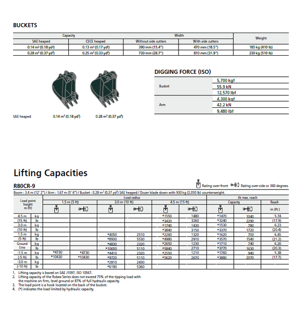 - Bucket Capacity: Ranges from 0.14 m³ to 0.28 m³, accommodating various digging requirements.