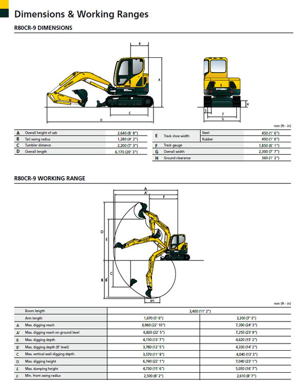 - Digging Depth: Maximum of 4,180 mm (13 ft 7 in) for versatile excavation tasks.
